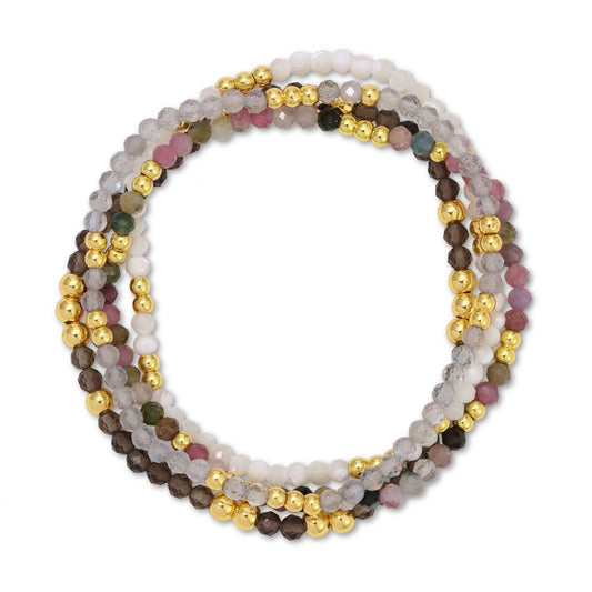 Set/12 Stone Accented Muyuki Delica Stretch Bracelets