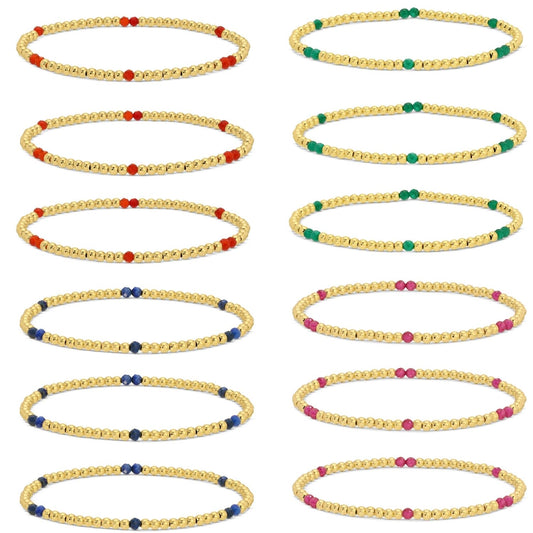 Set/24 Assorted 2mm stretch seed beed bracelets with gold bead accents