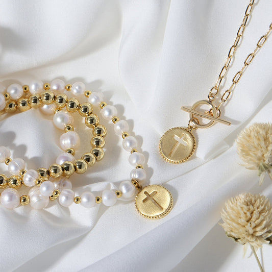 Pearl with Cross Bracelet