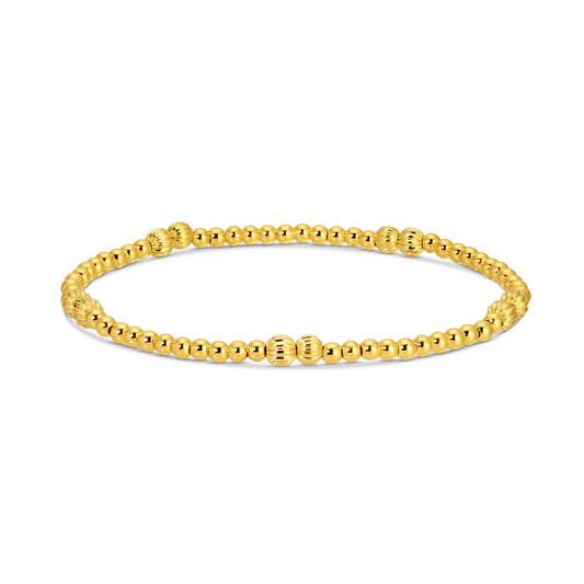 Set/12 3mm Stretch Bead Bracelets with Textured Larger Bead Accents