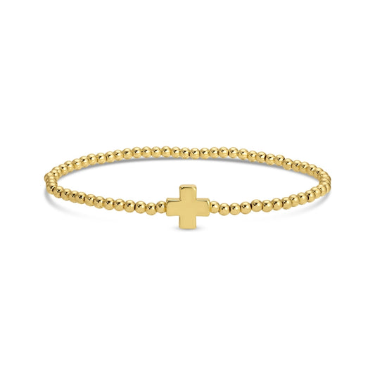 Set/12 3mm Beaded Stretch Bracelet with Single Gold Cross