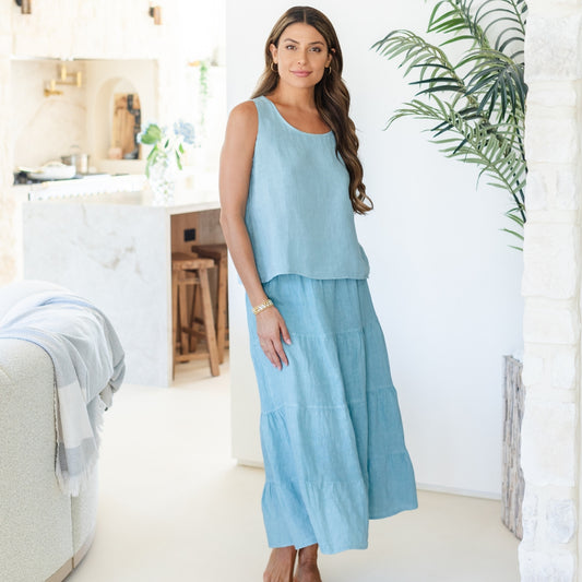 Linen Long Vest / Bathing Suit Cover-Up w/Single Tie