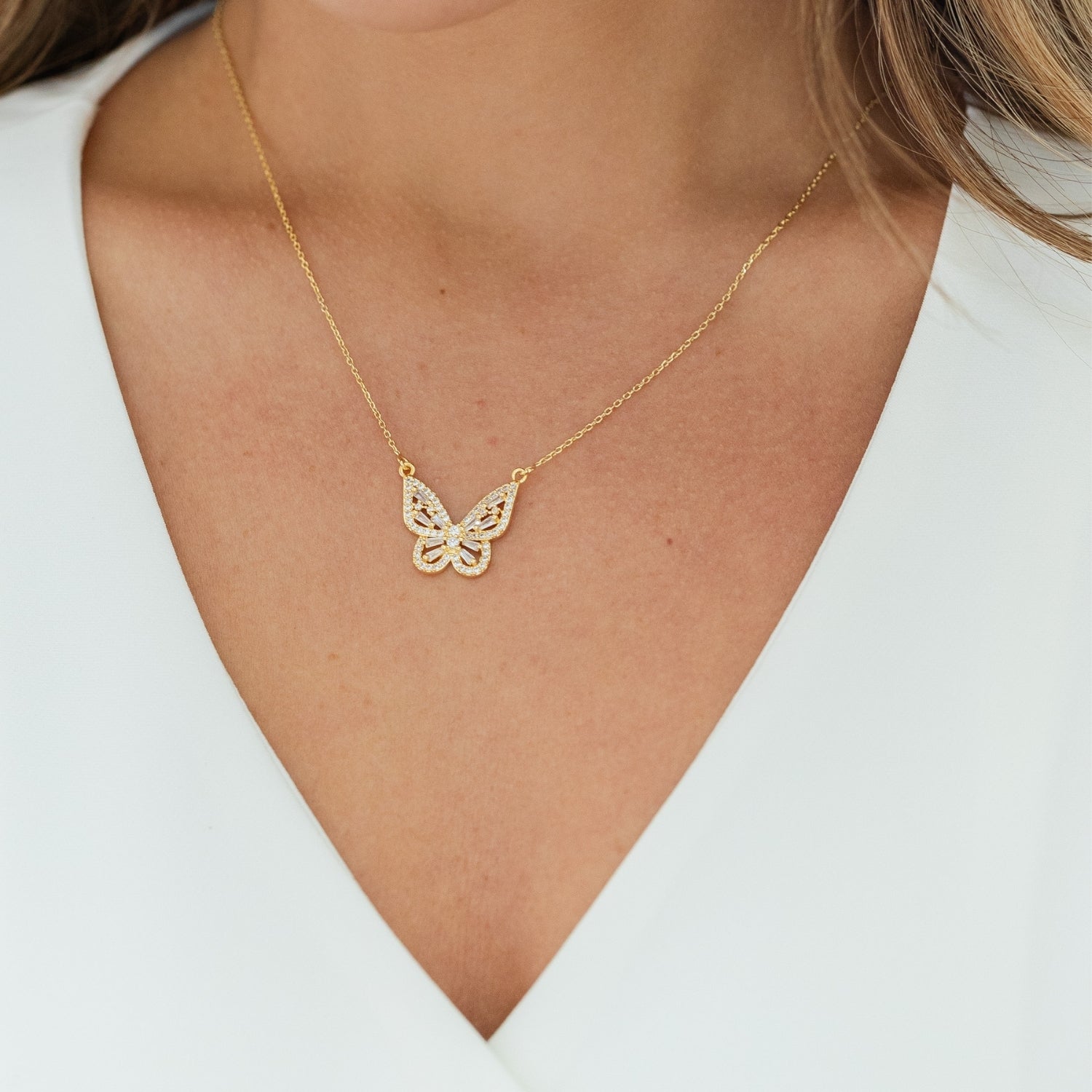 Get ready to flutter with this butterfly pendant, adorned with an assortment of uniquely shaped cubic zirconia!