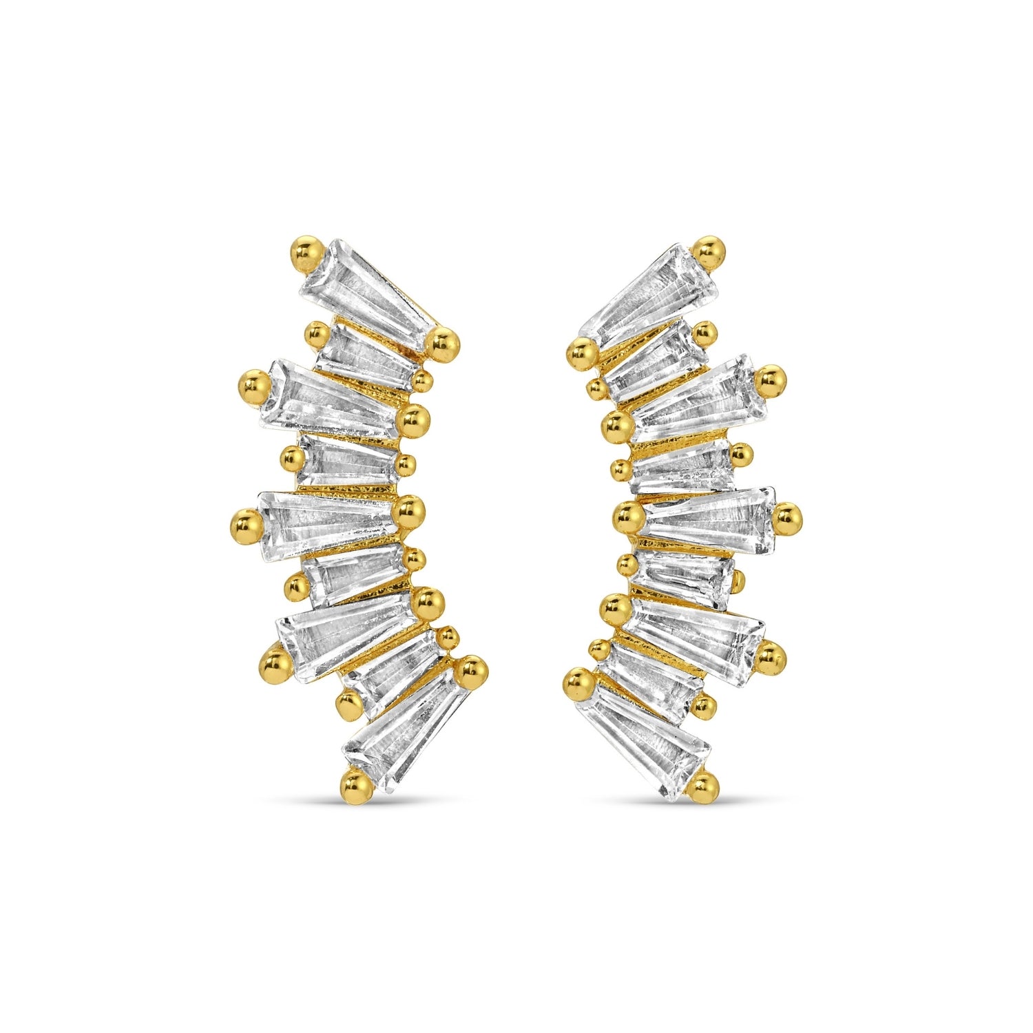 Featuring a sleek and modern design, these earrings showcases sparkling baguette-cut crystals set in a graceful curve, fun for both everyday wear and special occasions.