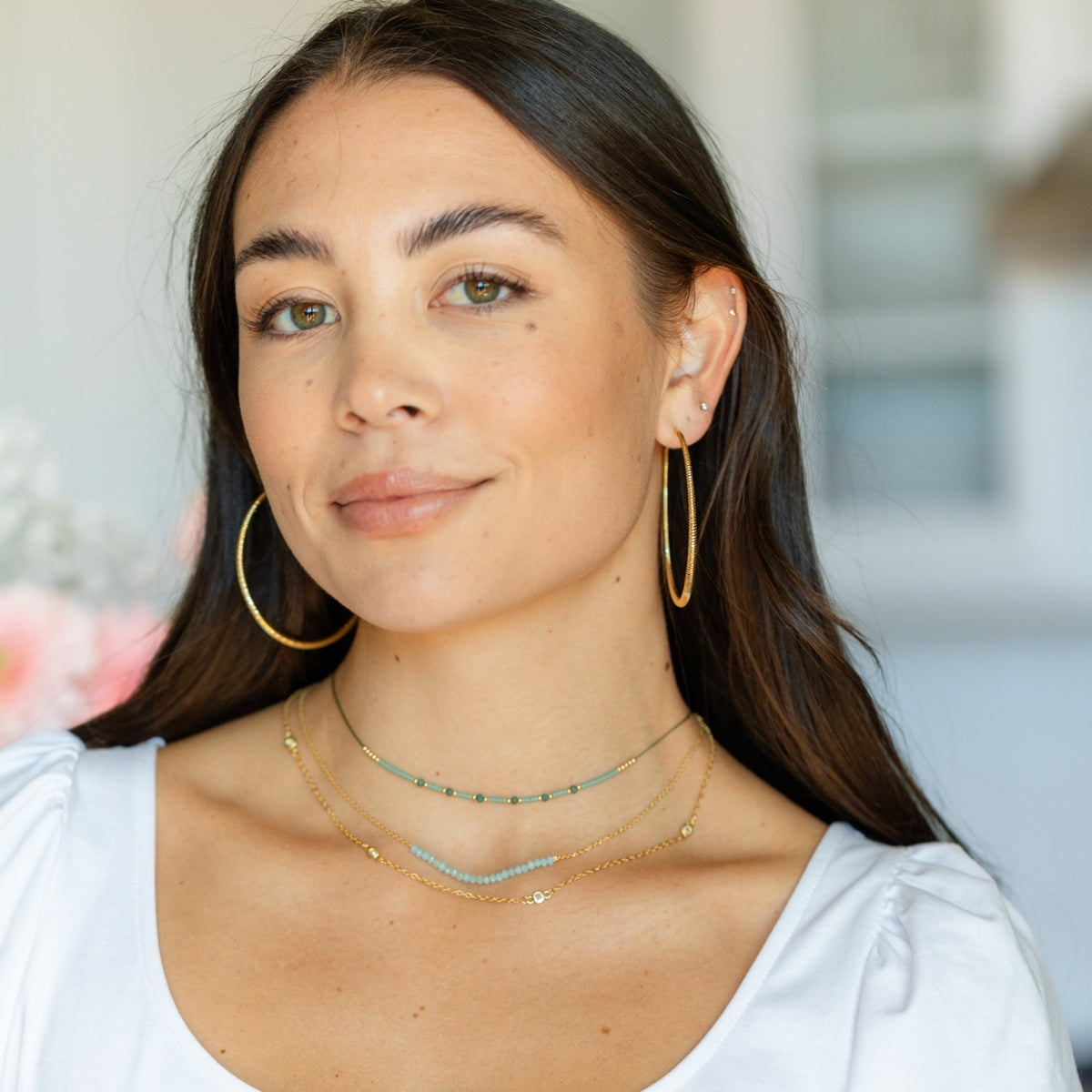 Enhance your look with this minimalist necklace featuring a row of elegantly-appointed glass crystals. Its versatility allows for it to be worn alone to exude a sophisticated air, or layer it to add a touch of fashion-forward color.