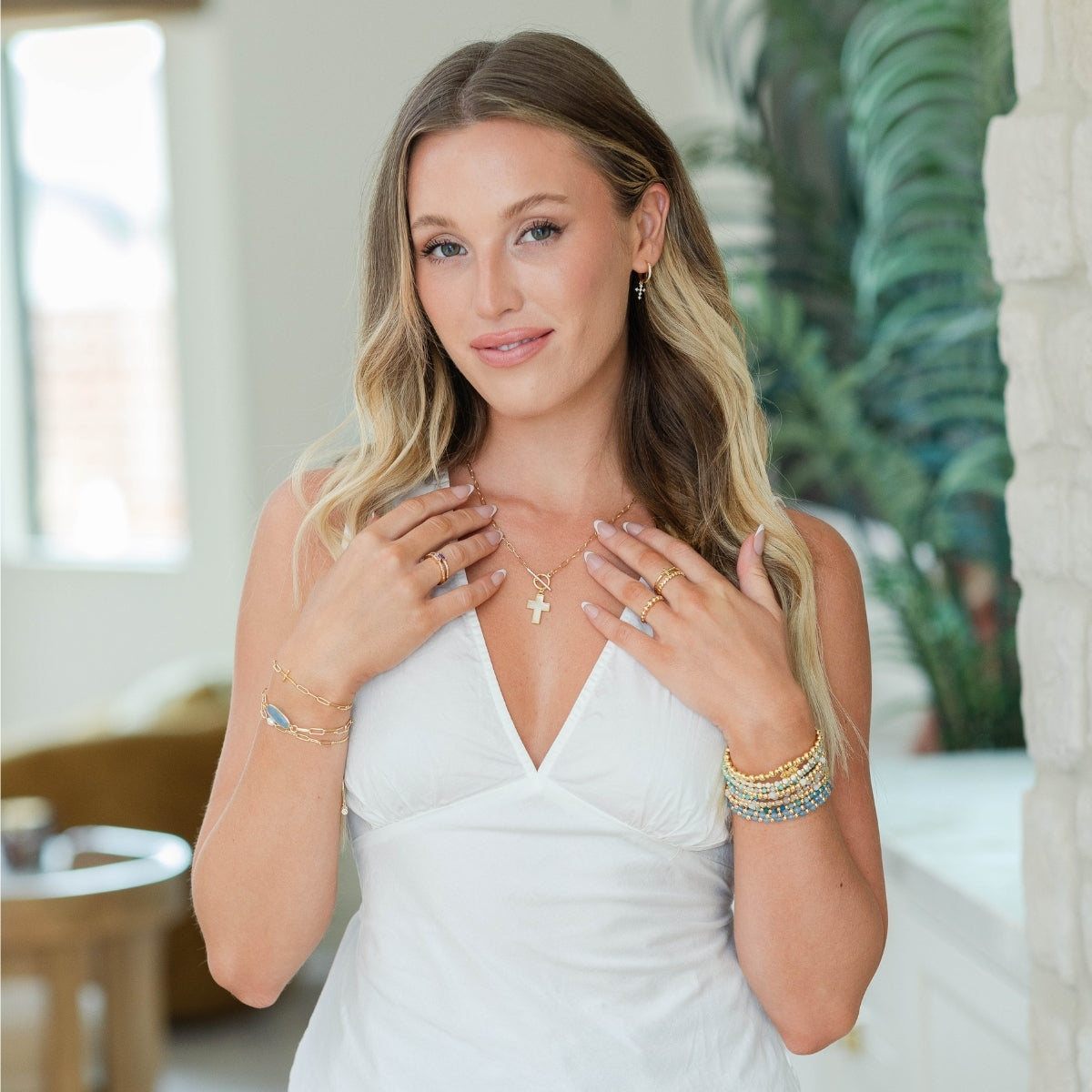 The Front Toggle Cross Pendant Necklace blends timeless symbolism with modern design, featuring a luminous shell cross pendant framed in radiant 18K gold plating and finished with a bold front toggle closure. Designed to be both functional and stylish, this gold plated cross necklace offers an elevated statement look while allowing easy wear and adjustable styling. The elongated chain and front-facing clasp add contemporary appeal, making this necklace a standout piece for every occasion or meaningful gifting.