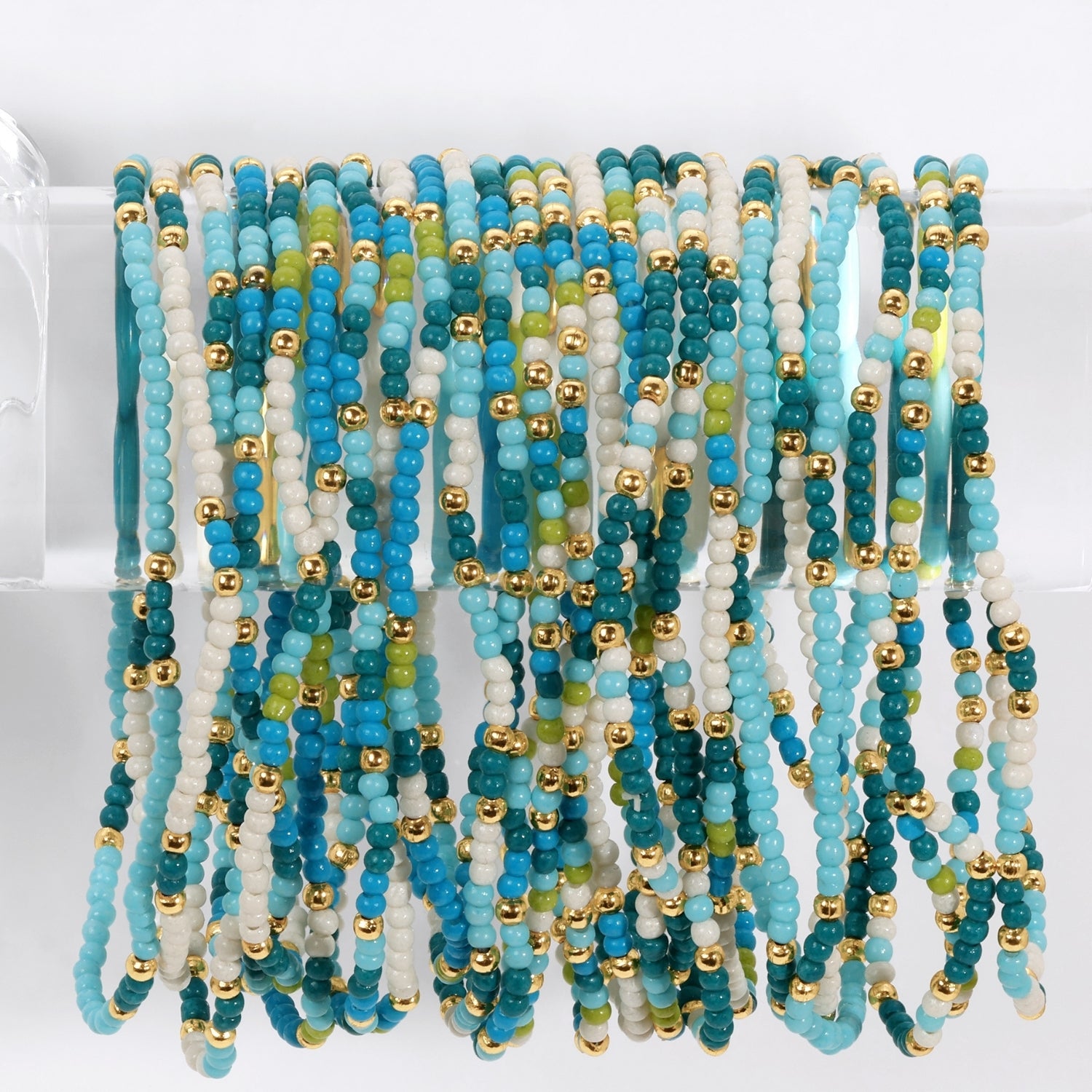 Set/24 Assorted 2mm stretch seed beed bracelets with gold bead accents