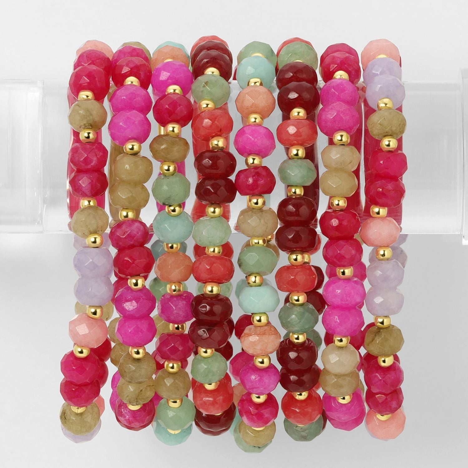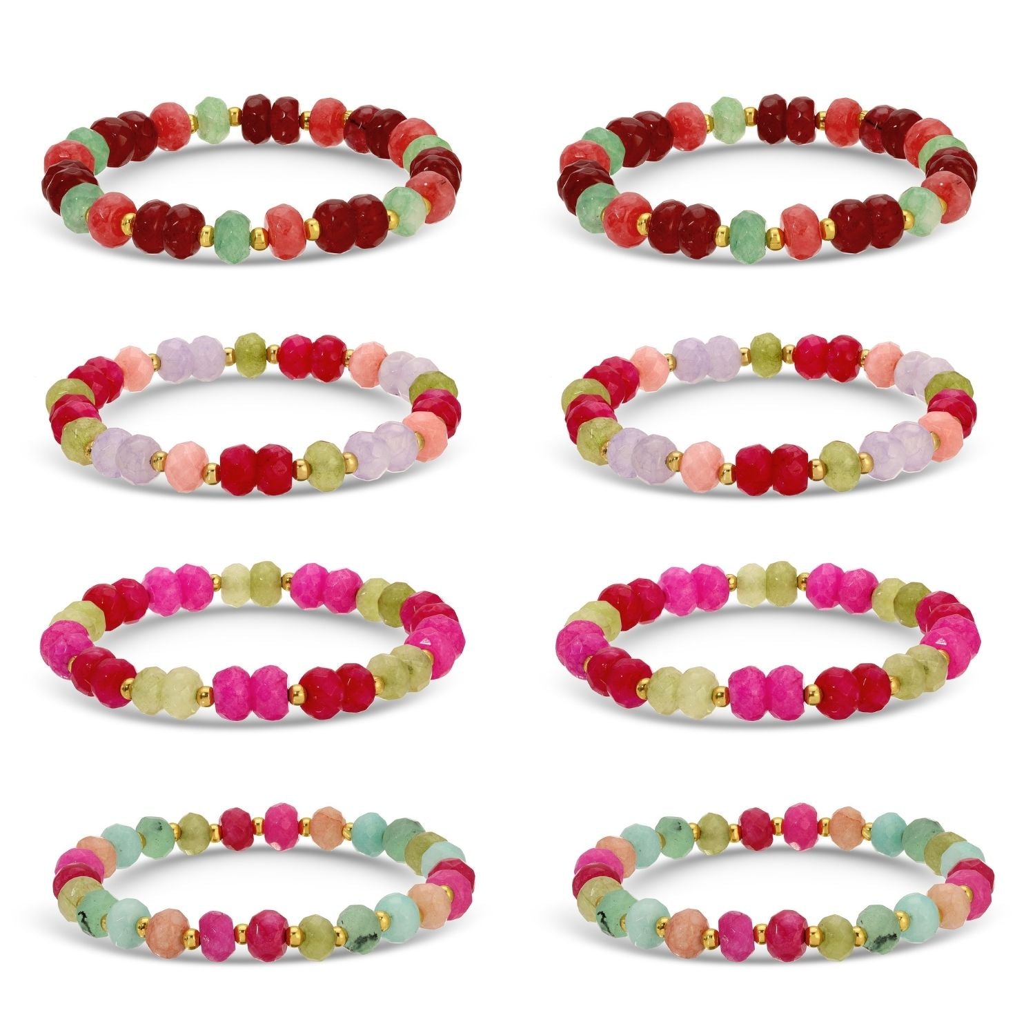Set/8 Large Stone Bracelets with Gold Bead Accents