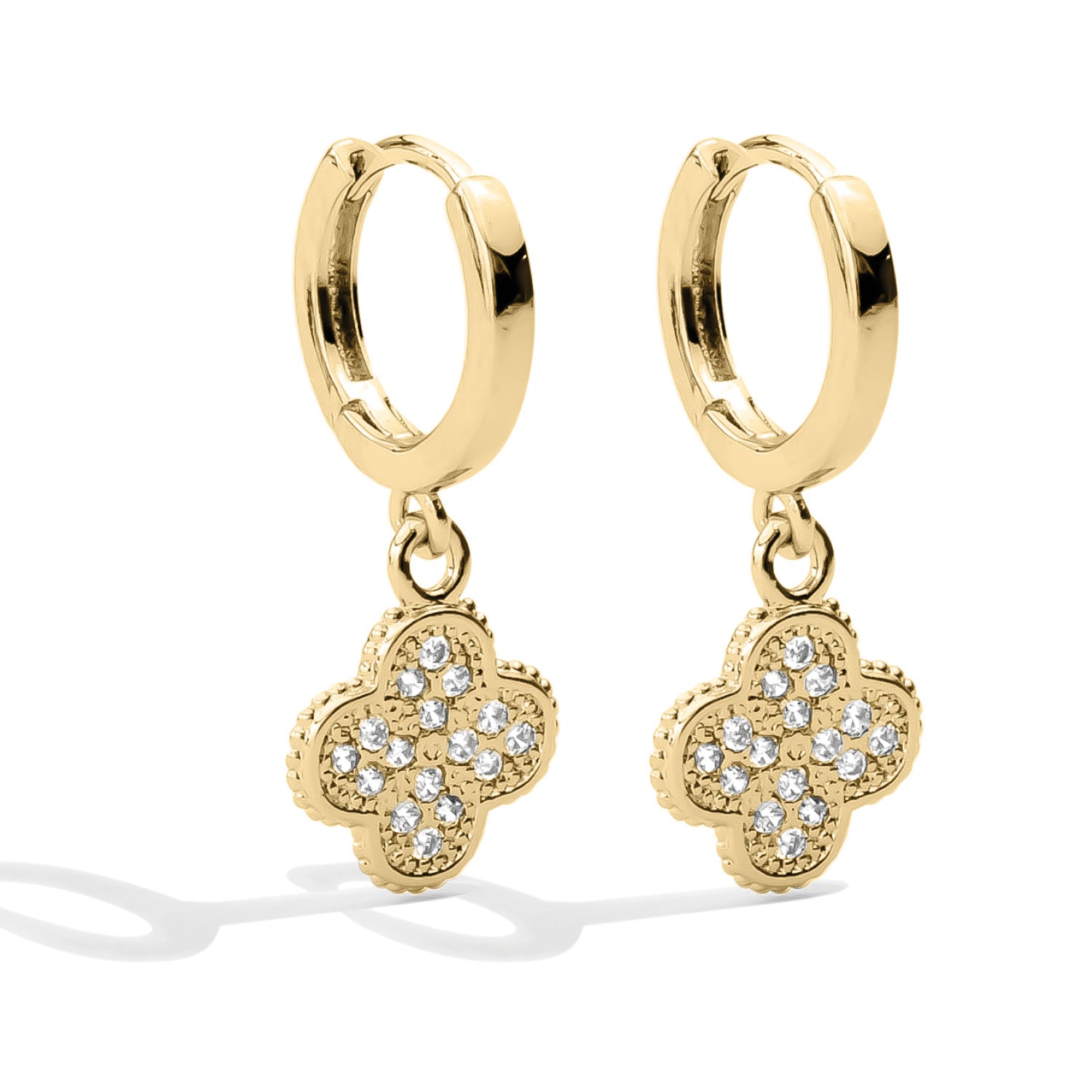 Small Huggies with Pave Quatrefoil