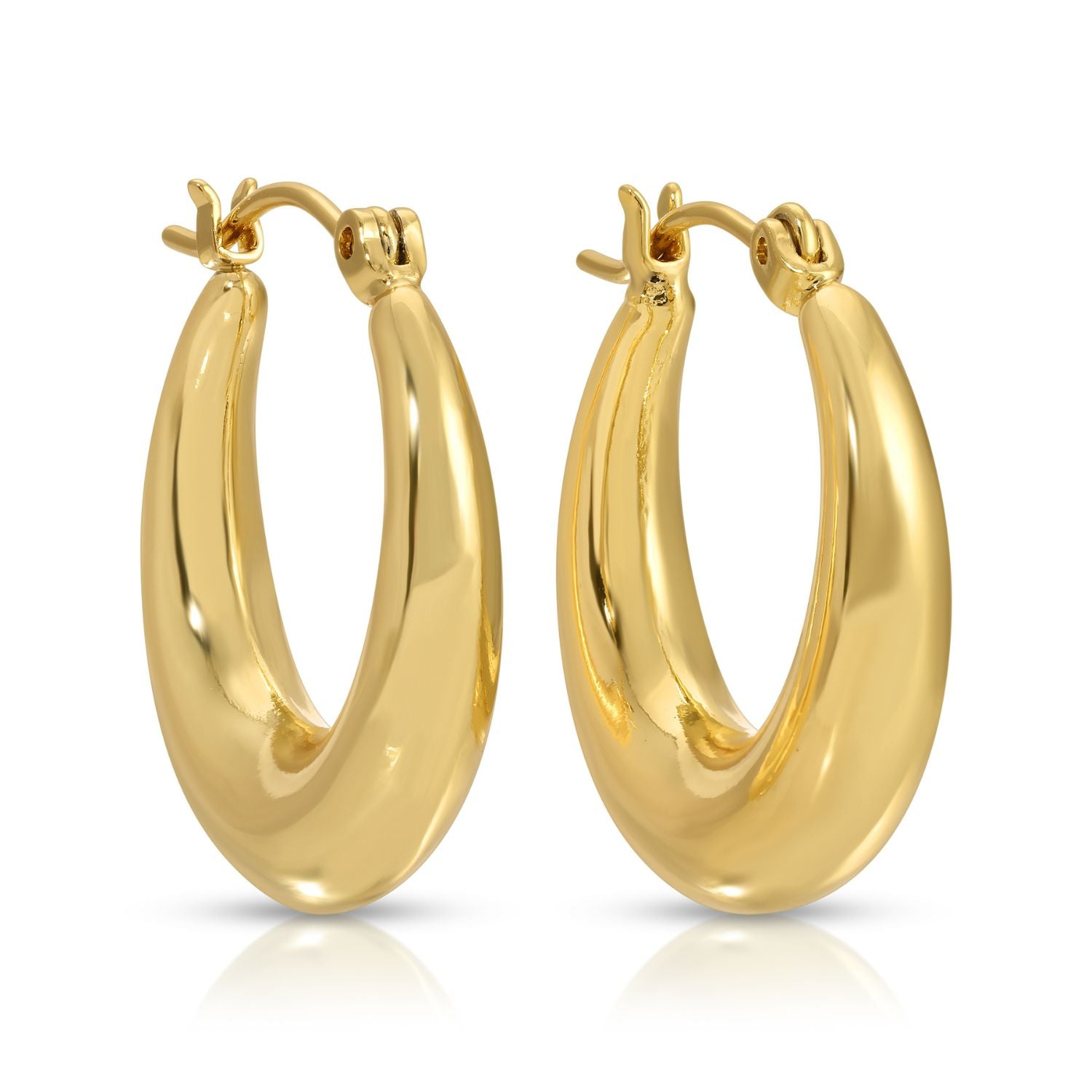Looking for a quick and stylish way to wear hoops? Our Wide Round Latch Huggies make it a breeze with their easy-to-use latch back closures. Plus, they're totally on-trend! It's a win-win situation!